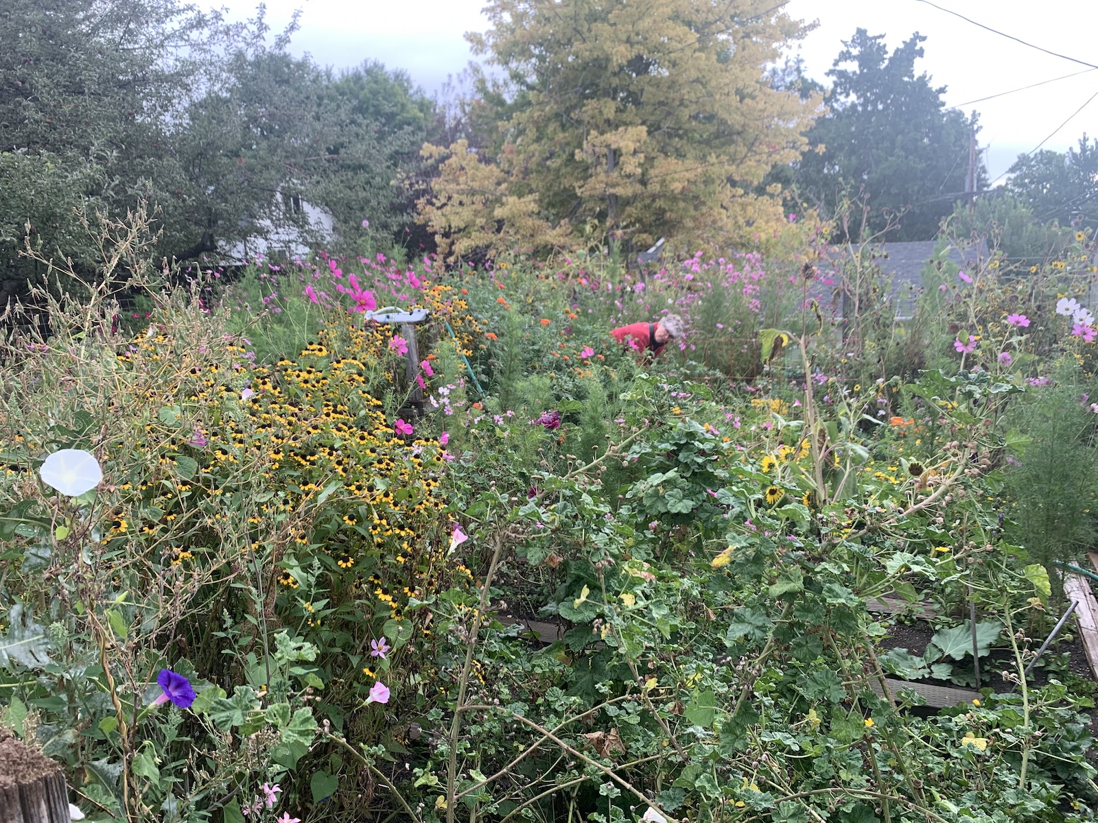 Look closely for Sue in the middle of the picture. She is surrounded by flowers and vegetables.