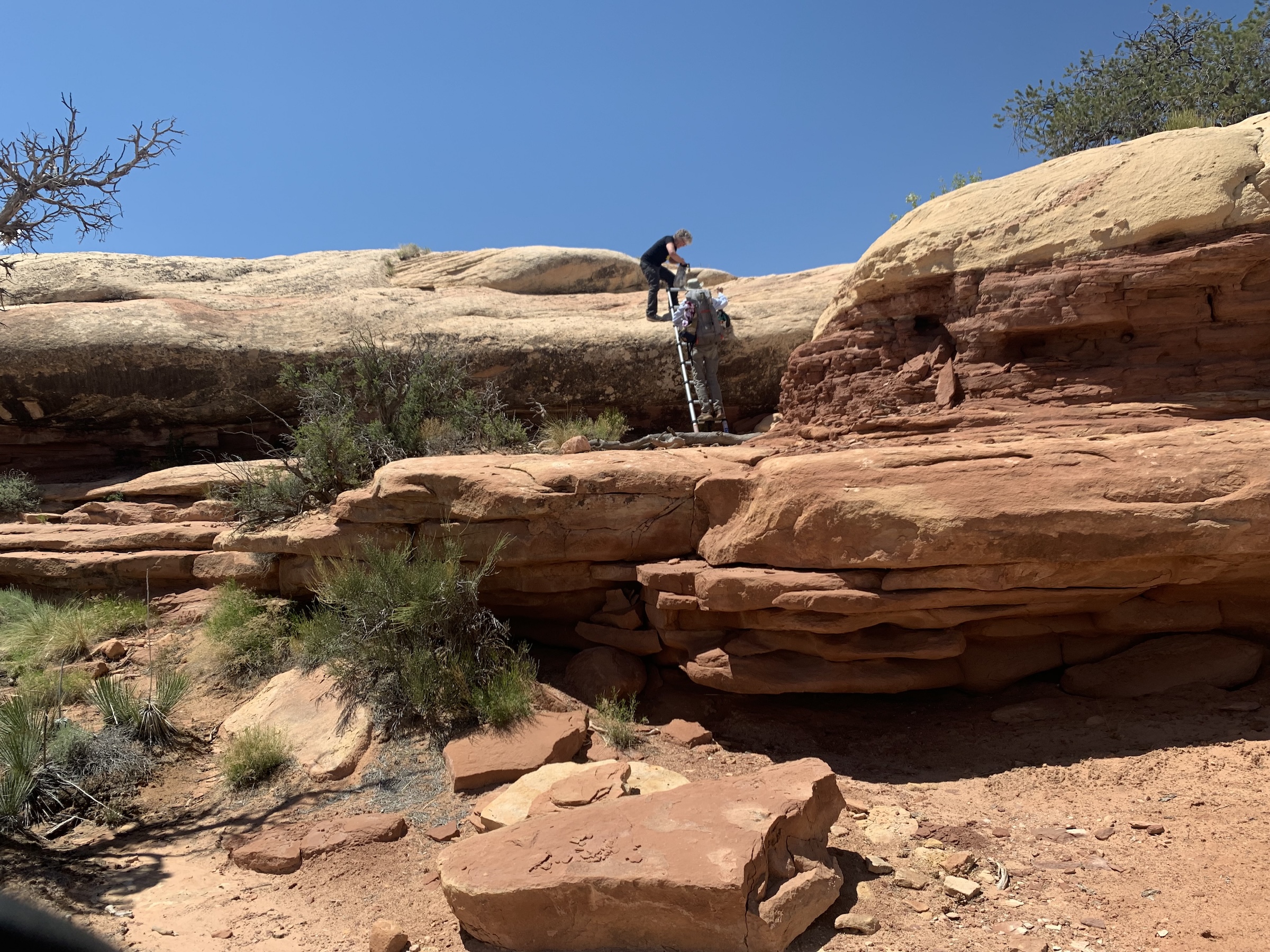 A portable ladder helped us since we don't scramble over the rocks as well as we once did. Of course, with permission from the Park Service.
